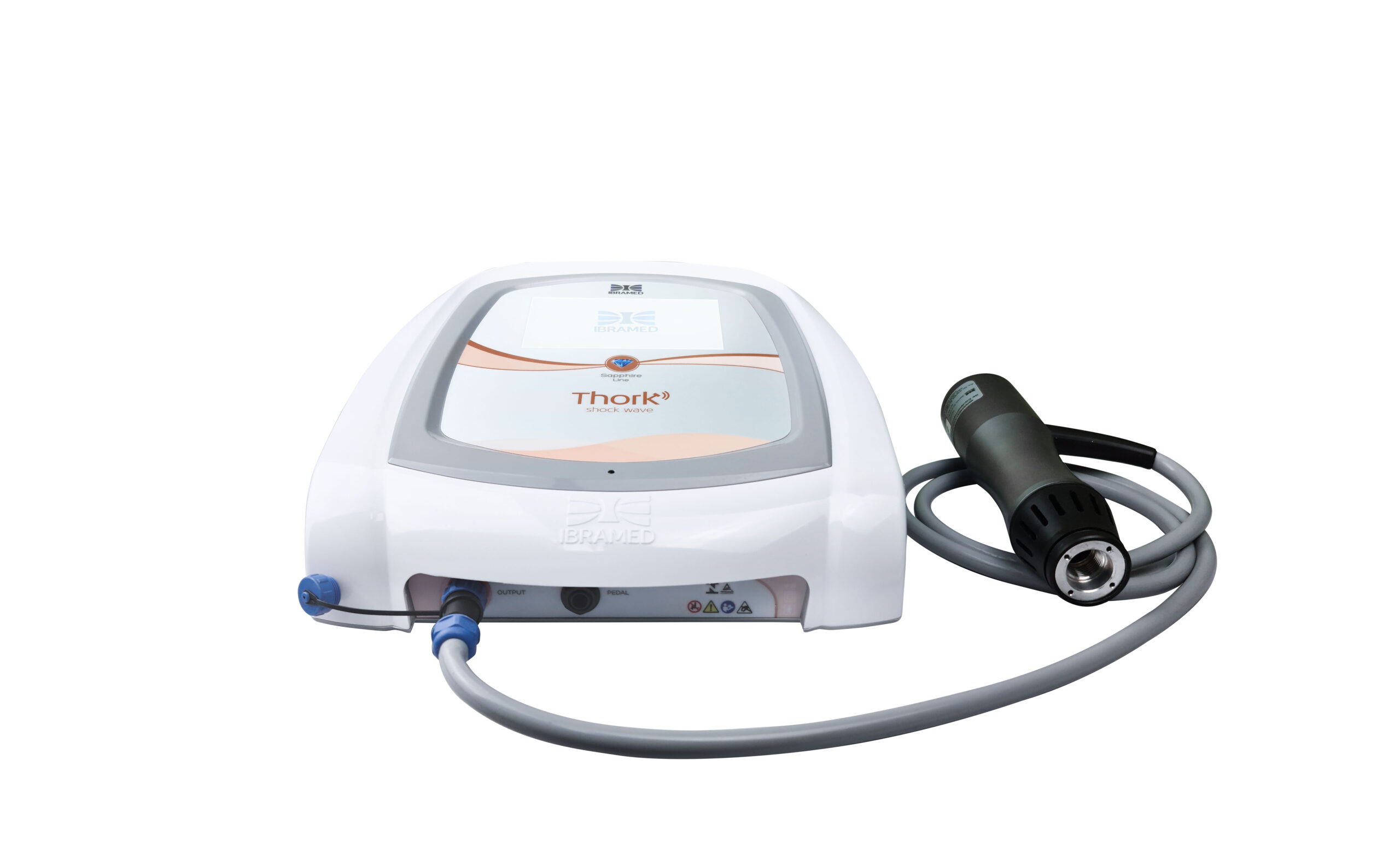 Thork Shock wave is a piece of equipment microcontrolled by extracorporeal shock wave therapy (ESWT – Extracorporeal Shock wave Therapy). The mechanical cavitational and thermal energy produced by Thork Shock wave is transferred to the patient through a radial shock wave applicator.