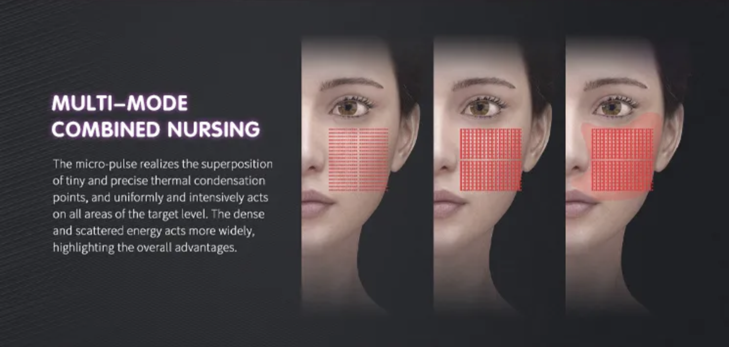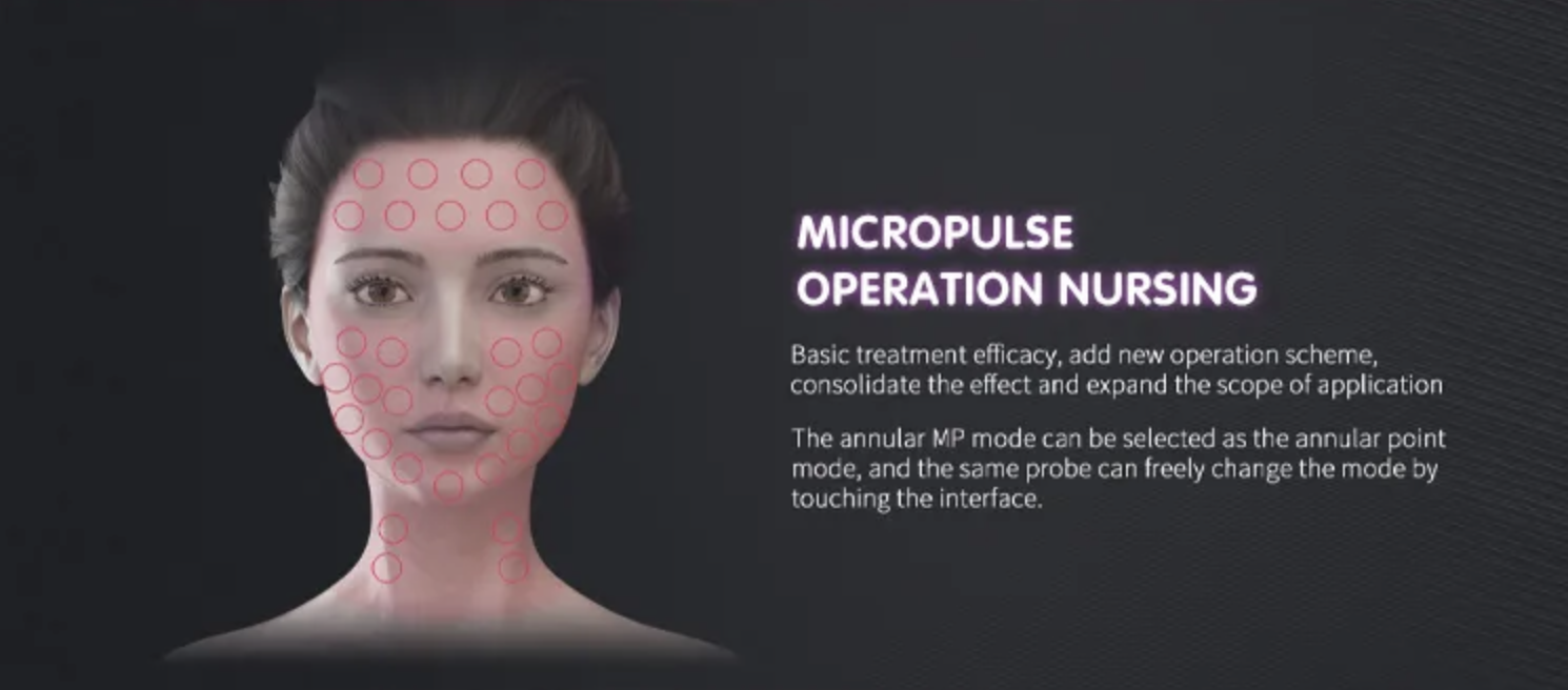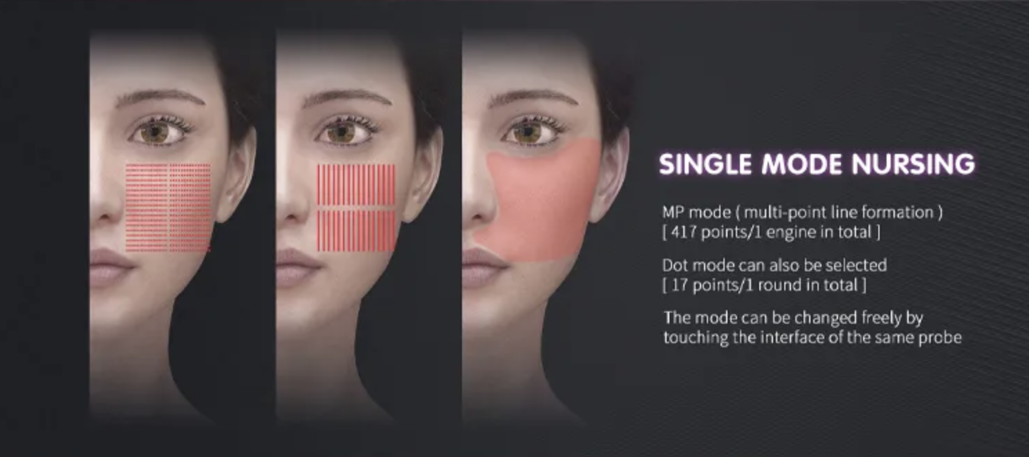 In MP mode, it is the microsecond power transmission mode, which has smaller and denser focus points than other instruments, improving safety as the point distribution is more uniform and efficient. ; a comfortable experience, with a shorter recovery period.